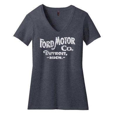Ladies Ford Distressed 1903 Text V-Neck - Triblend Heather Navy