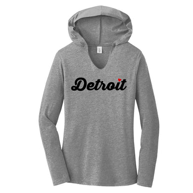 Ladies Detroit Heart Long Sleeve Hooded T-shirt - Heather Grey