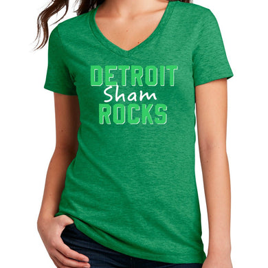 Ladies Detroit Sham Rocks St. Patrick's Day V-Neck - Heather Kelly Green