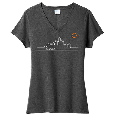 Ladies Relaxed V-neck Detroit Skyline T-shirt - Triblend Black
