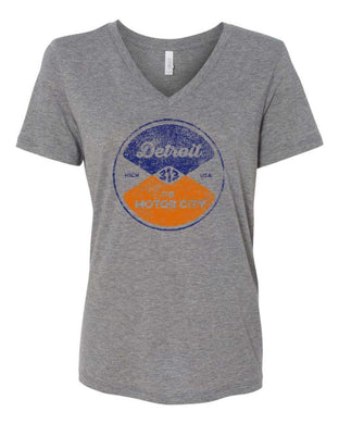 Ladies Relaxed V-neck Detroit Reel T-shirt - Triblend Grey