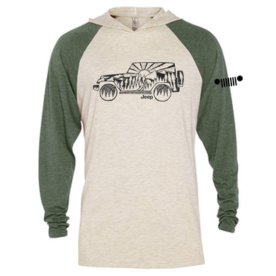 Mens JeepĀ® Atomic Side Long Sleeve Hooded T-Shirt - Moss Green / Natural