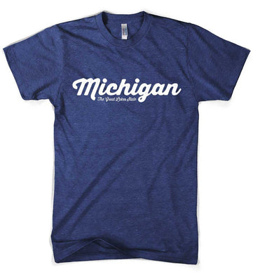 Mens Triblend Michigan Script T-shirt (Indigo)