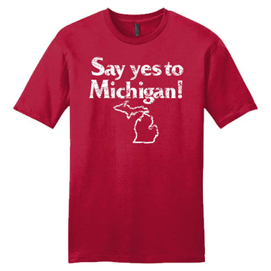 Mens “Say Yes to Michigan!” T-shirt (Red)-FINAL SALE