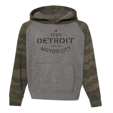 Toddler / Youth Hoodie - Detroit Stencil - Heather Grey / Camo