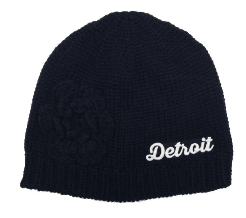 Hat - Detroit Thirsty Knit with flower - Black-FINAL SALE
