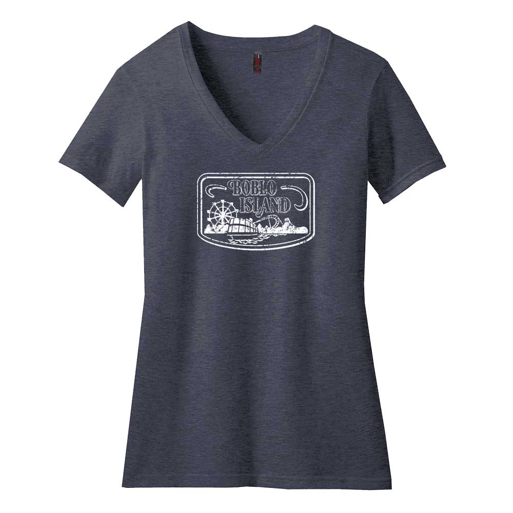 Ladies Relaxed V-neck Detroit Boblo Island T-shirt - Heather Navy