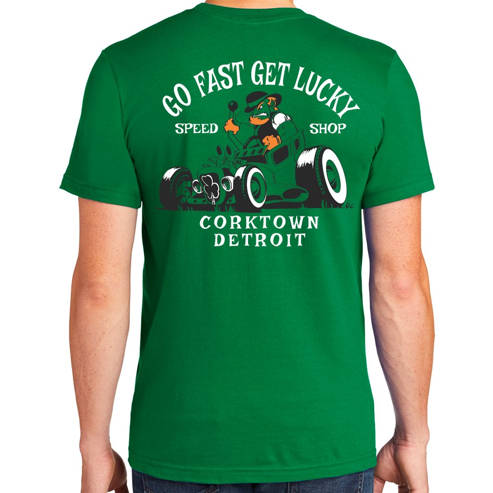 Mens Detroit Go Fast Get Lucky Speed Shop T-shirt (Kelly Green)