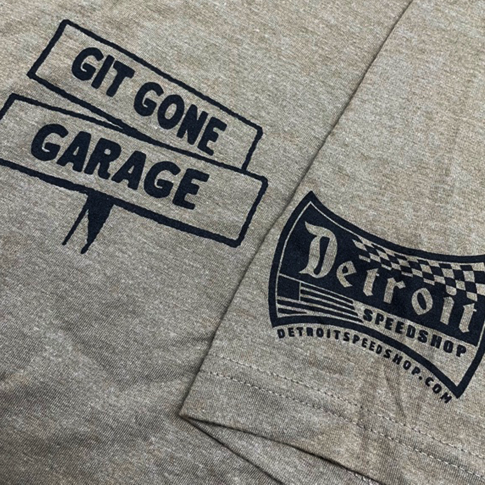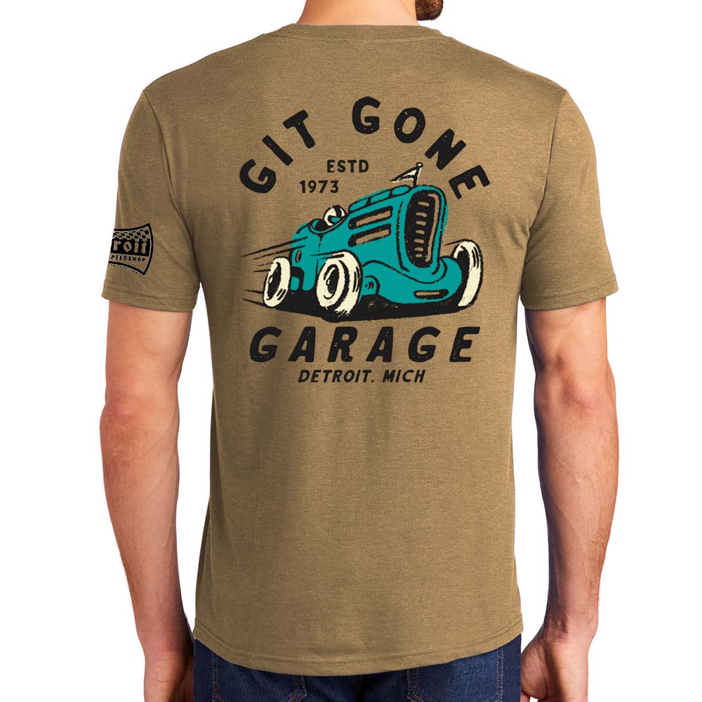 Mens Detroit Speed Shop Git Gone Garage T-shirt - Coyote Brown Triblend