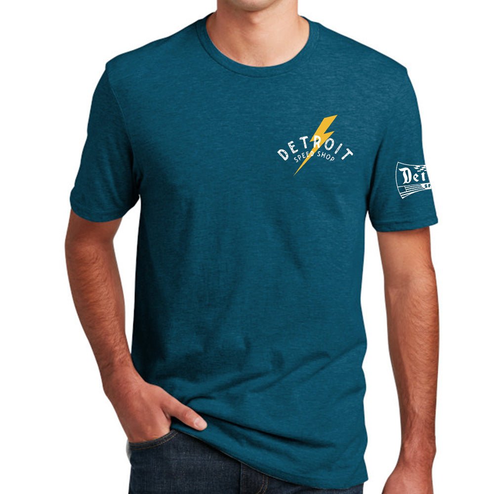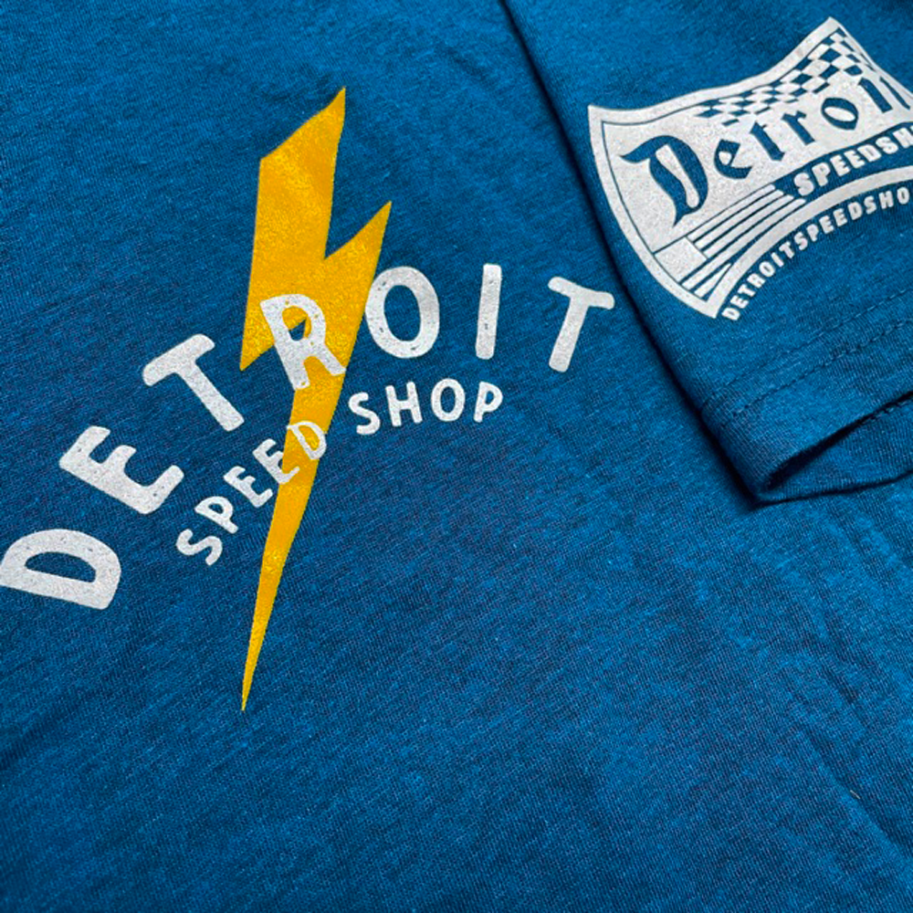 Mens Detroit Speed Shop Pin-up T-shirt - Heather Dark Ocean Blue