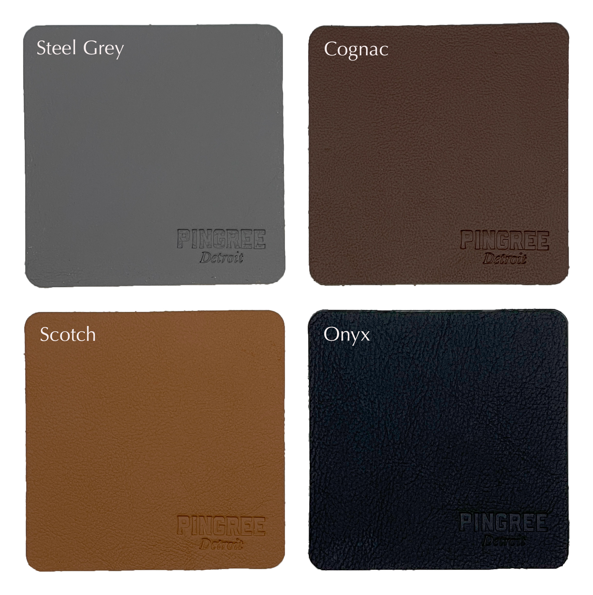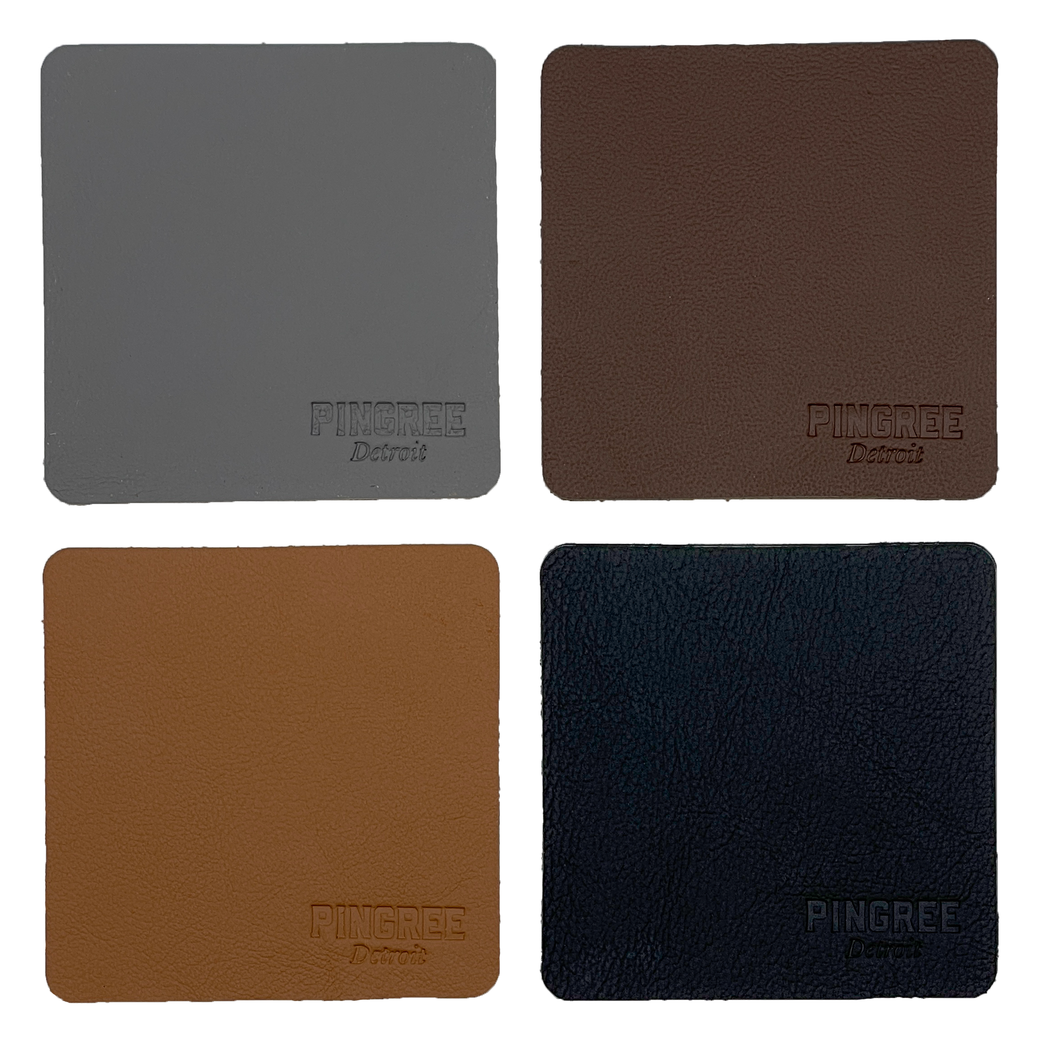 Your coaster is crafted with small batch leather reclaimed from the production of new cars. So, your Corktown Coasters may have a texture and shade that varies slightly from the leather pictured.