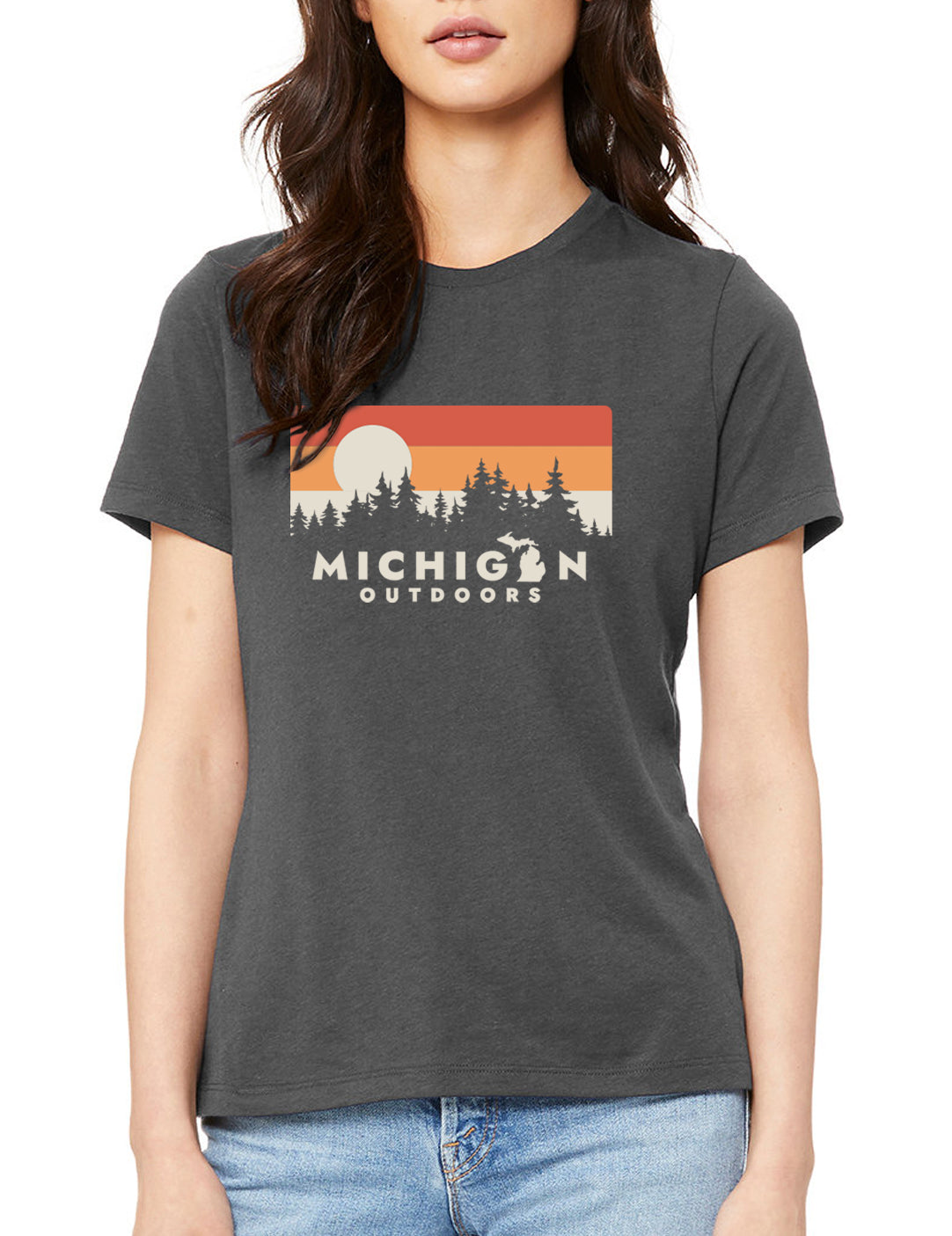 "Ladies, embrace your Michigan love with this playful and stylish women's T-shirt! Perfect for a day of exploring the Mackinac Bridge, munching on a pasty, or just running errands, this shirt will keep you comfortable and fashionable. Made from soft, lightweight fabric and featuring sunny good vibes, this shirt is perfect for any true Michigander. Whether you're cheering on the Spartans, admiring the beauty of the Great Lakes, or just living your best life, this shirt will have you feeling confident and proud. So why wait? Order yours today and show the world your Michigan pride!"