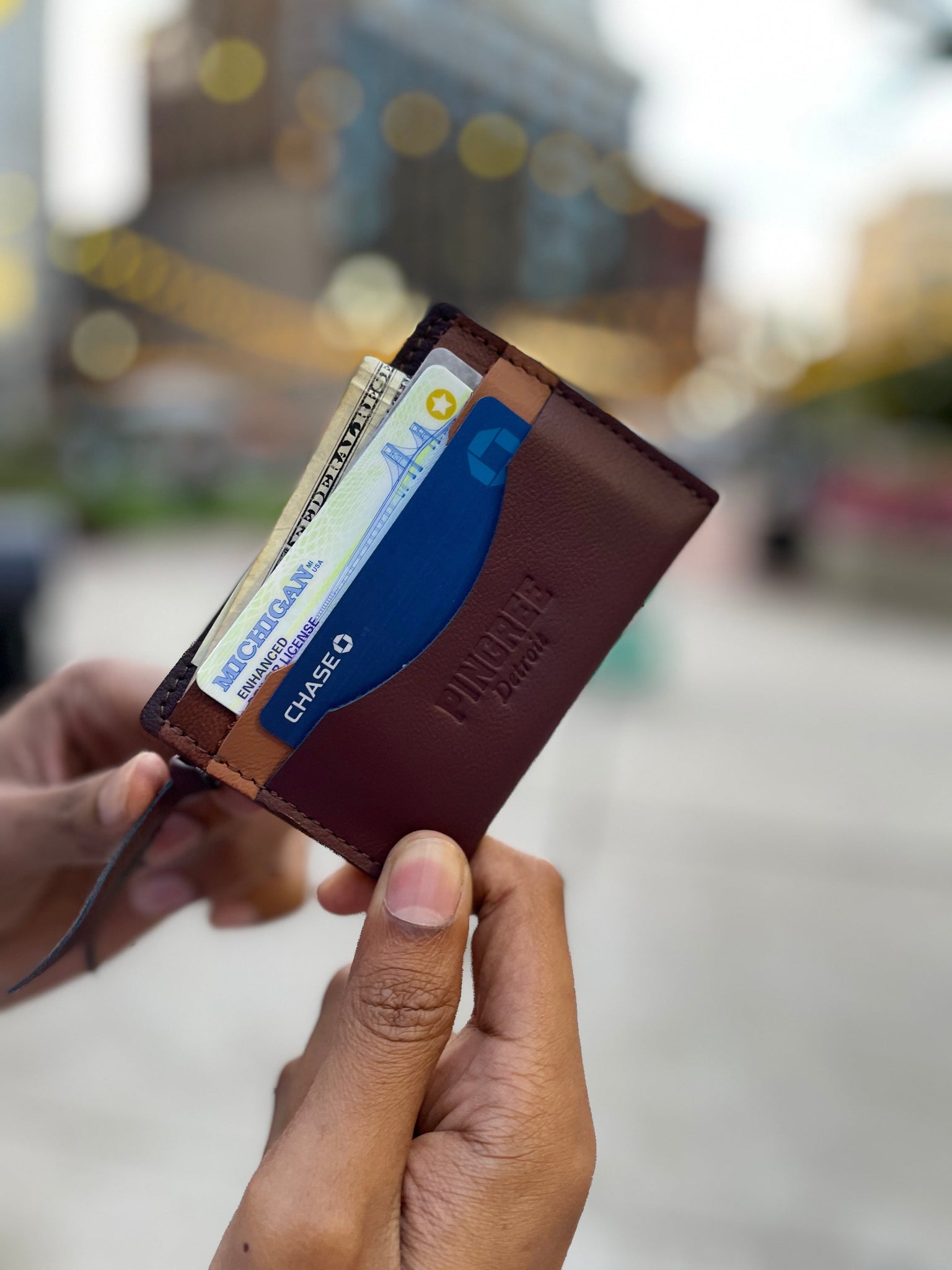 Featuring 3 card slots and a rear zipper pocket, our slim unisex zipper wallet has room for all your cards, coins, folded bills, and anything you want to keep secure on the go. Carry a piece of Detroit that’s as versatile, beautiful, and dynamic as you.Â